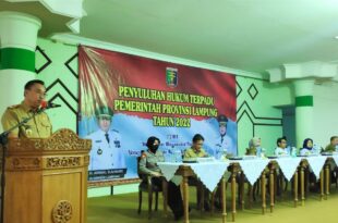 Tualngbawang ( Mediamerdeka)—- Pemerintah Provinsi Lampung menggelar Penyuluhan Hukum Terpadu kepada Aparataur Sipil Negara (ASN), Mahasiswa, Pelajar dan masyarakat umum di GSG Islamic Center Menggala, Tulangbawang, Selasa (8/11/2022). Penyuluhan Hukum Terpadu Pemerintah Provinsi Lampung Tahun 2022 mengambil tema“Mewujudkan Masyarakat Pedesaan Yang Cerdas Hukum Menuju Lampung Berjaya”. Kepala Biro Hukum Pemprov …