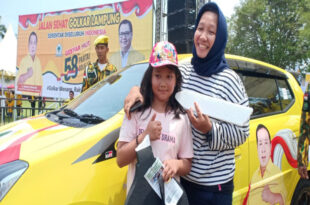 Bandarlampung ( Mediamerdeka)—- Setelah namanya disebut Ketua DPD Partai Golkar Provinsi Lampung Ir. Arinal Djunaidi dalam kupon yang diundi, Yuyun Febriana guru honorer yang bekerja di Kabupaten Lampung Tengah memperoleh hadiah utama satu unit mobil jalan sehat HUT Partai Golkar ke-58. Yuyun Febriana yang bertempat tinggal di Jalan Kopi, Rajabasa …