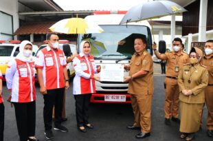 Bandarlampung ( Mediamerdeka)–Gubernur Lampung Arinal Djunaidi menyerahkan bantuan 1 Unit Mobil Ambulan Jenazah kepada Palang Merah Indonesia (PMI) Provinsi Lampung di Mahan Agung, Senin (10/10/2022). Bantuan diserahkan secara simbolis oleh Gubernur Arinal Djunaidi kepada Ketua PMI Provinsi Lampung Riana Sari Arinal. Kegiatan tersebut juga dihadiri oleh Pengurus PMI Provinsi Lampung …