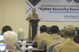 Bandarlampung ( Mediamerdeka)–Gubernur Lampung diwakili Kepala Dinas Kominfotik Provinsi Lampung, Ganjar Jationo, membuka acara Pelatihan Teknis Kesiapsiagaan Insiden Keamanan Siber (Cyber Security Exercise Technical) bagi Kabupaten/Kota se- Provinsi Lampung, yang berlangsung di Hotel Golden Tulip Springhil, Selasa (11/10/2022). Kegiatan pelatihan diikuti peserta dari Kabupaten/kota se Provinsi Lampung menghadirkan Narasumber dari …