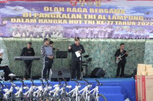 Pesawaran ( Mediamerdeka)—– Demi menguatkan rasa kebersamaan, Gubernur Lampung Arinal Djunaidi dan Komandan Pangkalan TNI Angkatan Laut (Danlanal) Lampung Kolonel Laut (P) Zul Fahmi melaksanakan olahraga bersama di Markas Komando (Mako) Lanal Lampung Caligi, Desa Batu Menyan, Kecamatan Teluk Pandan, Pesawaran, Selasa (11/10/2022). Olahraga bersama ini juga dalam rangka memperingati …
