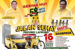 Bandarlampung (Mediamerdeka) – Dewan Pimpinan Daerah Partai Golkar Provinsi Lampung melaunching kupon jalan sehat HUT Ke-58 Partai Golkar Lampung, Selasa (11/10/2022). Launching kupon jalan sehat dilakukan oleh Sekretaris DPD Partai Golkar Lampung H. Ismet Roni, SH, MH, diserahkan ke panitia pelaksana untuk didistribusikan ke masyarakat Kota Bandarlampung dan sekitarnya. Jumlah …
