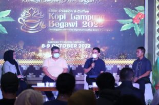 Jakarta ( Mediamerdeka)—– Wakil Gubernur Lampung Chusnunia Chalim mengajak semua pihak terkait bersinergi bersama dengan Pemerintah Provinsi Lampung demi mewujudkan Kopi Lampung Berjaya. Hal tersebut disampaikan oleh Wagub Nunik dalam main event Kopi Lampung Begawi tahun 2022 yang diadakan di Gedung Sarinah Thamrin Jakarta, Minggu (9/10/2022). Menurutnya, pengembangan kopi robusta …