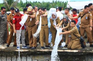 Tuba ( Mediamerdeka)—Asisten Perekonomian dan Pembangunan Kusnardi, mewakili Gubernur Lampung Arinal Djunaidi, melaksanakan kegiatan Restocking 1 Juta Ekor Benih Ikan Endemik Tahap Lanjutan bertempat di dermaga pelabuhan perikanan pantai Teladas Kabupaten Tulang Bawang, Selasa (4/10/2022). Kegiatan tersebut mengambil tema ‘Mewujudkan Sumber Daya Perikanan Lestari Untuk Lampung Berjaya Dan Indonesia Maju’. …