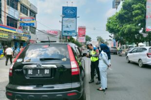 Bandarlampung (Mediamerdeka)– Dalam rangka meningkatkan kamseltibcarlantas serta taat pajak, Satuan Lalu Lintas (Satlantas) Polresta Bandar Lampung bersama Dispenda Lampung serta Jasa Raharja menggelar Razia gabungan di Jalan Radin Intan Tajung Karang Pusat Kota Bandar Lampung, Senin (19/09/22). Hadir dalam kegiatan Kanit Patroli Sat Lantas Ipda Tajudin, Kepala UPTD 1 Samsat …