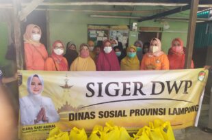 Bandarlampung ( Mediamerdeka)—- Ketua Dharma Wanita Persatuan (DWP) Dinas Sosial Provinsi Lampung Ny. Liana Aswarodi, didampingi anggotanya, melalui program SIGER berbagi kebahagiaan dengan menyerahkan bantuan paket sembako untuk warga Jalan Pandawa 2, Kelurahan Garuntang, RT.07, kampung baru, Bumi Waras Bandarlampung, Jumat (12/8/2022). Dalam kesempatan itu, Liana Aswarodi menyampaikan, kegiatan berbagi …
