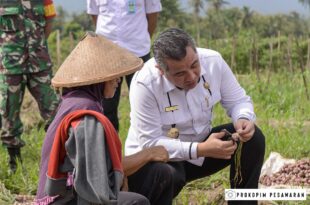 Pesawaran ( Mediamerdeka)— Bupati Pesawaran, Dendi Ramadhona bersama perangkat desa sukadadi meninjau panen bawang merah yang berlokasi di Desa Sukadadi, Kecamatan Gedong tataan, pada Kamis (9/6). Dendi berinteraksi langsung dengan para petani bawang yang sedang memanen bawang merah untuk periode keempat. “Hari ini saya ikut melakukan panen bawang merah bersama …