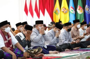 Bandarlampung ( Mediamerdeka)—— Gubernur Lampung Arinal Djunaidi bersama Ketua Tim Penggerak PKK Provinsi Lampung Ibu Riana Sari Arinal mengucapkan selamat Hari Raya Idul Fitri 1443 H kepada masyarakat Lampung. Gubernur dan keluarga melaksanakan Shalat Ied di Aula Mahan Agung, Rumah Dinas Gubernur, Senin (2/5/2022). Sholat Ied dilaksanakan tepat pukul 07:00 …