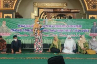 Pesawaran (Mediamerdeka)— Ketua TP PKK Kabupaten Pesawaran Nanda Indira Dendi, mengadiri pengajian Akbar sekaligus Pemberian Santunan kepada kaum Dhuafa dan anak yatim, bertempat di Masjid Agung Islamic Center Gedong Tataan Kabupaten Pesawaran Lampung. Acara yang dilaksanakan Majelis Taklim Al-Hidayah Kabupaten Pesawaran , Kamis (21/04/2022). Dengan mengusung tema “Ramadhan Berbagi, Damai …