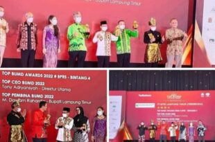 Lampung Timur (Mediamerdeka) – Pemerintah Kabupaten Lampung Timur meraih empat penghargaan tingkat nasional dalam ajang TOP BUMD Award 2022 di Ball Room-Hotel Raffles Jakarta, Rabu (20/04). Dua dari empat penghargaan untuk Kabupaten Lamtim itu diberikan kepada Bupati Muhammad Dawam Rahardjo sebagai TOP Pembina BUMD 2022 dan sebagai TOP Pembina BLUD 2022. …