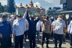 Bandarlampung ( Mediamerdeka)– — Gubernur Arinal Djunaidi bersama Ketua DPRD Provinsi Lampung Mingrum Gumay dan Kapolda Lampung Irjen Pol. Hendro Sugiatno, menemui langsung massa demonstran yang tergabung dalam Aliansi Lampung Memanggil (AML), di Gerbang Komplek Perkantoran Gubernur Lampung, Rabu (13/4). Dalam aksi demonstrasi tersebut, Koordinator Gerakan Aliansi Lampung Memanggil Tommy …