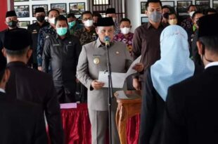 Lamsel (Mediamerdeka)– Bupati Lampung Selatan H. Nanang Ermanto melantik dan mengambil sumpah janji 47 Pejabat Administrator dan Pejabat Pengawas di lingkungan pemerintah daerah di aula sebuku, rumah dinas bupati setempat, Jum’at (8/4/2022). Pelantikan tersebut berdasarkan Surat Keputusan Bupati Lampung Selatan Nomor : 821.23.24./295-297/V.05/2022 Tentang Pemberhentian, Pemindahan, dan Pengangkatan Pegawai Negeri …