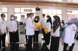 Bandarlampung ( Mediamerdeka)— Kepala Badan Kepegawaian Daerah (BKD) Provinsi Lampung Yurnalis, S.IP mewakili Gubernur Lampung, Arinal Djunaidi menyerahkan Petikan Keputusan Gubernur Lampung Tentang Pengangkatan CPNS (Calon Pegawai Negeri Sipil) Formasi Tahun Anggaran 2021 dan Kenaikan Pangkat Periode 1 April 2022 di Lingkungan Pemerintah Provinsi Lampung di Aula BKD Provinsi Lampung, …