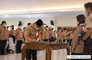 Pesawaran ( Mediamerdeka)— Ketua Kwartir Daerah Pramuka Lampung Chusnunia Chalim melantik pengurus Majelis Pembimbing Cabang (Mabicab) Gerakan Pramuka Pesawaran Masa Bakti 2021-2026, di GSG Pemkab Pesawaran, Kamis (24/3/2021). Pelantikan ini berdasarkan Surat Keputusan Kwartir Daerah Gerakan Pramuka Lampung Nomor 153 Tahun 2021 tentang Susunan Pengurus Majelis Pembimbing Cabang (Mabicab), Kwarcab, …