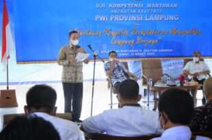 Bandarlampung ( Mediamerdeka)— Gubernur Lampung diwakili oleh Kepala Dinas Kominfotik Provinsi Lampung, Ganjar Jationo, membuka Uji Kompetensi Wartawan (UKW) angkatan XXVI Tahun 2022, di Balai Wartawan H. Solfian Akhmad, Jumat (25/3). Sebanyak 36 peserta mengikuti Uji Kompetensi Wartawan (UKW) angkatan XXVI Tahun 2022 yang digelar oleh PWI Lampung ini, dengan …