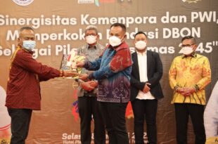 Kendari ( Mediamerdeka)– Gubernur Arinal Djunaidi menerima Piagam Penghargaan Inisiator Olahraga 2022 dari SIWO PWI, di Hotel Plaza Inn Kendari, Selasa (8/2). Mewakili Gubernur, Sekretaris Daerah Provinsi Lampung Fahrizal Darminto menerima langsung Piagam Penghargaan tersebut dari Menteri Pemuda dan Olahraga Zainudin Amali. Sekdaprov Fahrizal Darminto mengatakan bahwa Provinsi Lampung bangga …