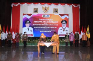 Bandarlampung (Mediamerdeka)—–Gubernur Lampung Arinal Djunaidi, berharap melalui kerjasama yang dilaksanakan 5 tahun kedepan, mampu membangkitkan perekonomian masing-masing Provinsi. Pernyatan tersebut disampaikan, Gubernur Arinal dalam kegiatan penandatangan Memorandum Of Understanding (MoU) antara Provinsi Lampung dan Provinsi Jawa Timur di Mahan Agung, Jumat (28/1/2022). Nota kesepahaman kerjasama Pemprov Lampung dan Pemprov Jawa …