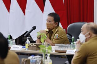 Bandarlampung ( Mediamerdeka)—-Gubernur Lampung Arinal Djunaidi mengikuti Rapat Kerja Evaluasi Program Strategis Kegiatan Pemerintah Daerah bersama Menteri Dalam Negeri Tito Karnavian secara daring dari Mahan Agung, Rumah Dinas Gubernur Lampung, Senin (24/01). Selain Menteri Dalam Negeri Tito Karnavian, Rakor tersebut juga diikuti oleh Ketua Komisi Pemberantasan Korupsi (KPK) Firli Bahuri, …