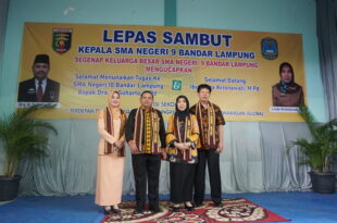 Bandarlampung ( Mediamerdeka) – SMA Negeri 9 Bandar Lampung menggelar kegiatan lepas sambut Kepala SMA Negeri 9 dari Kepala Sekolah lama Drs.H.Suharto,M.Pd kepada Kepala Sekolah baru Linda Krisnawati,M.Pd di aula Sekolah setempat, Jum’at (7/1/2022). Diketahui, SMA Negeri 9 Bandar Lampung memiliki visi sekolah seperti, ” Terdepan dalam Imtaq dan IPTEK,lingkungan …