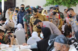 Bandarlampung ( Mediamerdeka)——- Gubernur Lampung Arinal Djunaidi dan Kapolda Lampung Irjen Pol. Hendro Sugiatno mendampingi Kapolri Jenderal Pol. Listyo Sigit Prabowo melakukan peninjauan vaksinasi serentak Provinsi Lampung, bertempat di Gedung Graha Wangsa, Bandar Lampung, Selasa (11/1/2022). Kapolri Jendral Pol. Listyo, menjelaskan dosis vaksin yang diberikan sekitar 2.200 untuk masyarakat umum, …