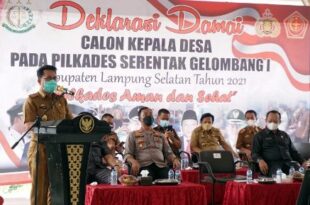Lamsel ( Mediamerdeka)—Pemerintah Kabupaten (Pemkab) Lampung Selatan menggelar deklarasi damaiPemilihan Kepala Desa (Pilkades) Serentak 2021 di Aula Sebuku, rumah dinas Bupati Lampung Selatan, Senin (18-10-2021). Hal tersebut bertujuan agar Pilkades Serentak Tahun 2021 yang digelar pada 28 Oktober 2021 berlangsung aman, damai, sehat, dan kondusif. Deklarasi dihadiri Sekretaris Daerah (Sekda) …