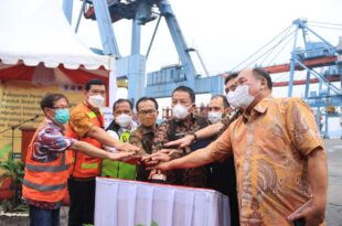 Bandarlampung ( Mediamerdeka) —–Gubernur Lampung Arinal Djunaidi melepas ekspor perdana produk PT. Great Giant Pineapple (PT. GGP) ke Singapura, dengan menggunakan layanan Meratus Internasional, di PT. Pelindo Panjang, Bandar Lampung, Minggu (29/8/2021). Pelepasan yang dilakukan secara simbolis itu ditandai dengan penekanan tombol sirine dan pemecahan kendi, dengan disaksikan Sesmenko Perekonomian …