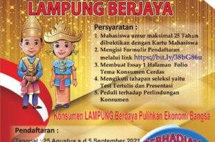 Bandarlampung ( Mediamerdeka) – Upaya terobosan dimasa pandemi Covid-19 tak menghalangi dalam mewujudkan Perlindungan Konsumen di Indonesia, khususnya di Pemerintah Provinsi Lampung melalui Dinas Perindag yang akan menggelar audisi Duta Konsumen Cerdas Lampung Berjaya tahun 2021. Diketahui, rangkaian kegiatan audisi Duta Konsumen Cerdas Lampung Berjaya dilaksanakan mulai tanggal 25 Agustus …