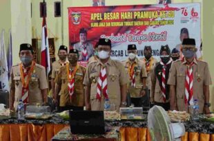 Lamteng ( Mediamerdeka) – Wakil Bupati Lampung Tengah dr. Ardito Wijaya menghadiri acara Apel Besar hari Pramuka ke – 60 tahun 2021 tingkat daerah Lampung secara virtual di Sanggar Pramuka pada sabtu 14 Agustus 2021. Acara itu Pula di hadiri oleh Ka.Kwarcab Pramuka Lampung Tengah Abdulhak dan para pengurus pramuka …