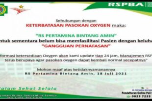 Bandarlampung ( Mediamerdeka)– Penularan kasus Covid-19 di Provinsi Lampung membuat layanan di sejumlah rumah sakit di Bandarlampung menolak pasien. Rumah Sakit Pertamina Bintang Amin yang berada di kampus Universitas Malahayati memasang pengumuman tidak menerima pasien gangguan pernafasan dengan alasan karena keterbatasan pasokan tabung oxygen. Pengumuman yang ditempel di RS Pertamina …