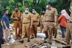 Lamsel ( Mediamerdeka)—- Bupati Lampung Selatan H. Nanang Ermanto di dampingi Sekretaris Daerah Thamrin, kepala dinas Perkim ibu Yanni Munawarty S.T. dan jajaran Dinas Instansi terkait memberikan bantuan uang tunai, sembako dan perlengkapan harian kepada Ahmad Syukur pemilik Rumah Roboh akibat lapuk di Desa Gedung Harta Kecamatan Penengahan, Senin (3/5/2021). …