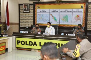Bandarlampung ( Mediamerdeka)— Gubernur Lampung Arinal Djunaidi dan Kapolda Lampung Irjen Pol Hendro Sugiatno mengikuti arahan Kapolri Jenderal Listyo Sigit Prabowo terkait kesiapan pengamanan Idul Fitri 1442 H di masa pandemi Covid-19, dalam Rakor Lintas Sektoral 2021, di Ruang Rapat Utama Polda Lampung, Mapolda Lampung, Rabu (21/4/2021). Dalam arahannya, Kapolri …