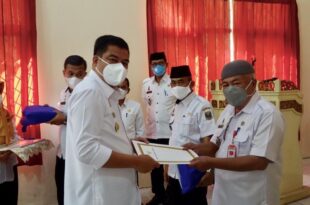 Gunung Sugih ( Mediamerdeka)—-Bupati Lampung Tengah (Lamteng), Musa Ahmad menghadiri penyerahan SK Pensiunan Aparatur Sipil Negara (ASN), di aula BKPSDM kabupaten setempat, Rabu (21/4/2021). Bupati berharap kepada para pensiunan agar tetap dapat berkontribusi dalam pembangunan Lamteng meskipun telah purna tugas. Hadir mendampingi Bupati dalam acara tersebut Kepala BKPSDM Lamteng, Chandra …