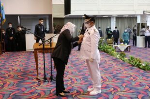 Bandarlampung ( Mediamerdeka )—— Wakil Gubernur Lampung Chusnunia Chalim (Nunik) melantik dan mengambil sumpah jabatan penjabat (Pj) Bupati Pesisir Barat Bambang Sumbogo, di Lt. III Balai Keratun, Komplek Kantor Gubernur, Bandarlampung, Selasa (30/3/2021). Pelantikan ini berdasarkan Keputusan Menteri Dalam Negeri Nomor 131.18-645 Tahun 2021 tanggal 23 Maret 2021 Tentang Pengangkatan …