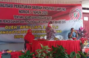 BANDARLAMPUNG, Mediamerdeka.co — Anggota DPRD Provinsi Lampung dapil Bandarlampung Aprilliati, kembali turun ke konstituen dalam rangka melaksanakan Sosialisasi Peraturan Daerah Nomor 3 Tahun 2020 tentang adaptasi kebiasaan baru dalam pencegahan dan pengendalian corona virus disease 2019 atau Covid-19 di Langkapura, Bandar Lampung, Ahad (14/3). Menghadirkan akademisi Universitas Lampung Rini Fatonah …