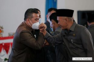 Pesawaran ( Mediamerdeka) – Bupati Pesawaran terpilih periode 2021-2024 Dendi Ramadhona mengajak rivalnya dalam Pilkada 9 Desember 2020 lalu, untuk membangun secara bersama-sama Kabupaten Pesawaran. Hal ini disampaikan Dendi Ramadhona saat menghadiri Rapat Paripurna Istimewa DPRD Pesawaran tentang Pengumuman Usulan Pengesahan Pengangkatan Paslon Bupati dan Wakil Bupati terpilih pada Pilkada …