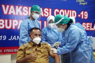 Lampungselatan, mediamerdeka.co- Pemerintah Kabupaten (Pemkab) Lampung Selatan melaksanakan program vaksinasi Covid-19, pada Selasa (19/1/2021). Bupati Lampung Selatan, H. Nanang Ermanto menjadi orang pertama di Bumi Khagom Mufakat penerima vaksin jenis Sinovac itu. Proses vaksinasi tersebut dilaksanakan di Rumah Sakit Umum Daerah (RSUD) Bob Bazar Lampung Selatan. Nanang Ermanto menjalani vaksinasi …