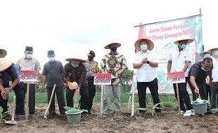 lampungselatan, mediamerdeka.co- Bupati Lampung Selatan, H. Nanang Ermanto bersama Ketua Komisi IV DPR RI, Sudin, SE lakukan Penanaman Perdana Komoditi Pisang Barangan Merah di Kebun Nursery PT Talun Jaya Abadi Desa Tanjung Sari Kecamatan Palas, Jum’at(8/1/2021). Turut dihadir pada acara tanam perdana tersebut, Sekretaris Daerah lamsel, Thamrin, S.Sos, MM, Kepala …