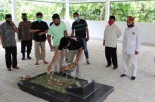 Lampung selatan, mediamerdeka.c0- Wakapolda Sumetera Selatan Brigjen Pol. Rudi Setiawan, SIK.SH. MH bergelar Pangeran Sangun Ratu Ya Bandar II berziarah ke tempat pemakaman keluarga di Kalinda Kabupaten Lampung Selatan (Lamsel), Sabtu (31/10/2020). Pangeran tiba kalianda sekitar pukul 08:45 WIB bersama rombongan, disambut Temenggung Nimbang Marga dan Panglima Hulubalang Kebandaran Way …