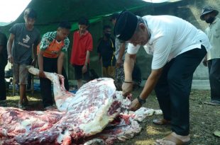 Metro (Mediamerdeka.co)- Wakil Walikota Metro Djohan berkurban sapi jenis limousin yang proses penyembelihannya berlangsung di kediaman pribadi Jalan Gabus Kelurahan Yosodadi, Metro Timur, Jumat (31/7). Satu ekor sapi yang di serahkan Wakil Walikota Metro untuk dibagikan pada warga setempat. Djohan mengatakan, pembagian kurban ini sepenuhnya diserahkan kepada warga untuk membaginya. …