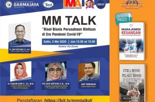 Bandarlampung (Mediamerdeka.co)– Institut Informatika dan Bisnis (IIB) Darmajaya menghadirkan pelaku usaha di Provinsi Lampung dalam Magister Manajemen (MM) Talk bersama Indonesian Marketing Association (IMA) Lampung Sabtu, 2 Mei 2020. MM Talk dengan empat pembicara yakni Ketua Yayasan Alfian Husin Dr. Andi Desfiandi, S.E., M.A., Dekan Fakultas Ekonomi dan Bisnis IIB …