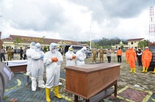 Pesawaran (Mediamerdeka.co)- Bupati Dendi Ramadhona dan Kapolres AKBP Popon Ardianto Sunggoro ikuti simulasi pemulsaran dan pemakaman jenazah covid-19 yang dilangsungkan di Halaman Mapolres Pesawaran, Selasa (28/04/2020). Kegiatan tersebut melibatkan petugas medis, petugas kepolisian dan TNI lalu petugas BPBD serta petugas pemakaman yang terlatih dari komponen masyarakat Bumi Andan Jejama. Kapolres …