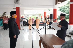 Lamteng (Mediamerdeka.co)- Bupati Lampung Tengah Loekman Djoyosoemarto, melantik Penjabat (Pj) Sekda Kabupaten Lampung Tengah, Hannibal, SH. MH. di aula Siger Emas, Pemkab Lampung Tengah. Jum’at (17/04/2020). Usai pelantikan dilakukan serah terima jabatan dari Pj. Sekda yang lama dari Ir. Zulkifli, SE, MM kepada Pj. Sekda yang baru, Hannibal, yang saat …
