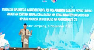 JAKARTA (MM) — Sekretaris Daerah Provinsi Lampung, Marindo Kurniawan, memaparkan praktik dan inovasi manajemen talenta Aparatur Sipil Negara (ASN) di lingkungan Pemerintah Provinsi (Pemprov) Lampung dalam forum ekspose di Gedung Badan Kepegawaian Negara (BKN) Jakarta, Selasa (4/11/2025). Kegiatan tersebut menjadi bagian dari langkah strategis Pemprov Lampung dalam memperkuat sistem …