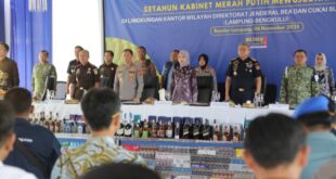 BANDARLAMPUNG — Pemerintah Provinsi Lampung bersama Kantor Wilayah Direktorat Jenderal Bea dan Cukai (DJBC) Sumatera Bagian Barat (Sumbagbar) melaksanakan pemusnahan barang hasil penindakan terhadap 29,18 juta batang rokok ilegal, 53,5 kilogram tembakau iris, serta 13,4 ribu liter minuman mengandung etil alkohol (MMEA), di Bandar Lampung, Kamis (6/11/2025). Kegiatan yang berlangsung …