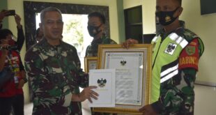 Bandarlampung,-mediamerdeka.co-Komandan Korem 043/Garuda Hitam Brigjen TNI Toto Jumariono memberikan penghargaan kepada dua orang Bintara Pembina Desa (Babinsa) : Sertu Kurdi dan Pelda Ferdian, Kamis (5/11/2020). Penyerahan penghargaan berlangsung di Aula Markas Kodim 0421/Lampung Selatan. Penghargaan dari Danrem itu diberikan atas keberhasikan Sertu Kurdi dan Pelda Gerdian dibantu warga, mengamankan Narkotika …