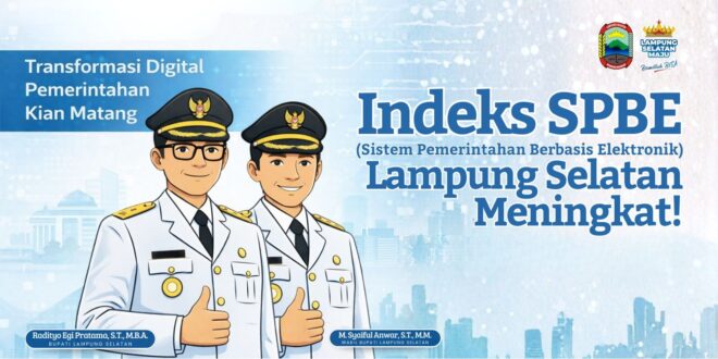LAMSEL, Kalianda – Pemerintah Kabupaten (Pemkab) Lampung Selatan mencatat peningkatan signifikan dalam penerapan Sistem Pemerintahan Berbasis Elektronik (SPBE). Indeks SPBE Kabupaten Lampung Selatan naik dari 3,08 pada tahun 2024 menjadi 3,34 pada tahun 2025 dengan predikat “Baik”. Capaian tersebut berdasarkan hasil pemantauan Kementerian Pendayagunaan Aparatur Negara dan Reformasi Birokrasi (KemenPAN-RB) …