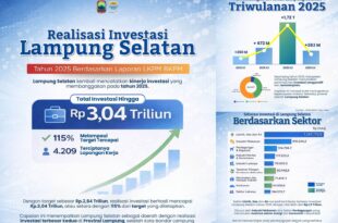 LAMSEL, Kalianda- Realisasi investasi Kabupaten Lampung Selatan tahun 2025 melampaui target yang ditetapkan. Hingga akhir …