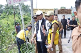 Lampung Tengah,-Bupati Lampung Tengah (Lamteng) Ardito Wijaya turun langsung meninjau proses pembersihan bahu jalan di …