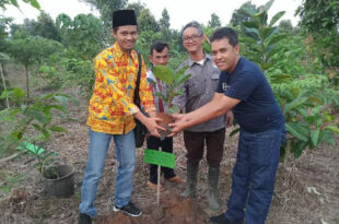 Labuhan Maringgai ( Mediamerdeka)— Anggota DPRD Lampung dari Fraksi Golkar Ali Imron menanam pohon Ficus …