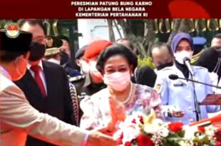 Jakarta ( Mediamerdeka )- Presiden Kelima RI Megawati Soekarnoputri meresmikan patung Proklamator Sukarno sedang menunggang …